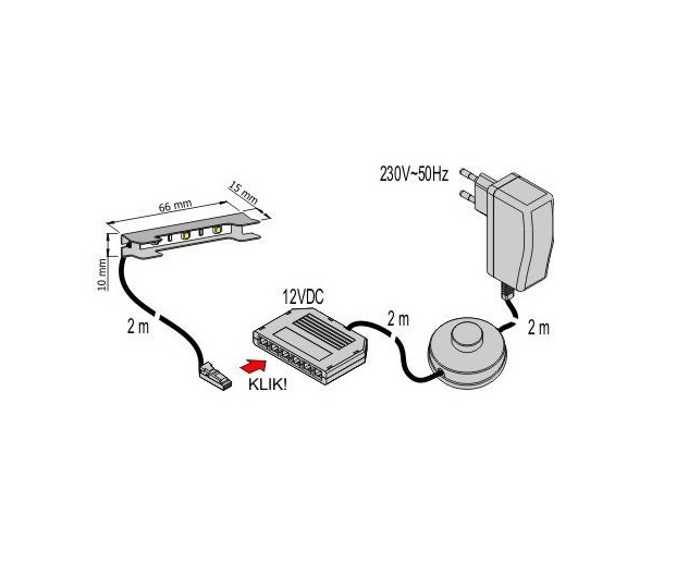 Комплект светильник LED KLIPS пластиковый 3000К (2 шт.), ножной выключатель, блок питания арт.ZPRFT-2-30K-01W