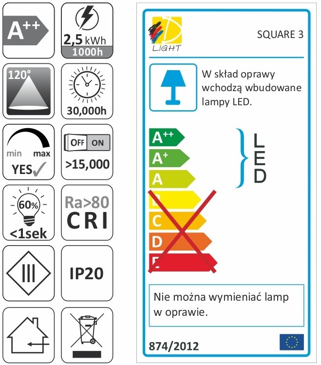 Светильник LED SQUARE 3, 2,5W 12VDC 9LED 3000К, провод 2 м, белый арт.SQUARE3-BI-30K-01W