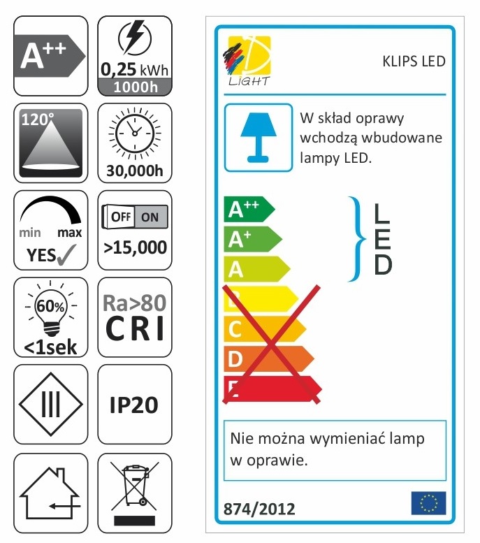 Светильник LED KLIPS металлический 0,25W 12VDC 6000К LED3528, провод 2 м арт.KLIPS-M-3528-60K-01