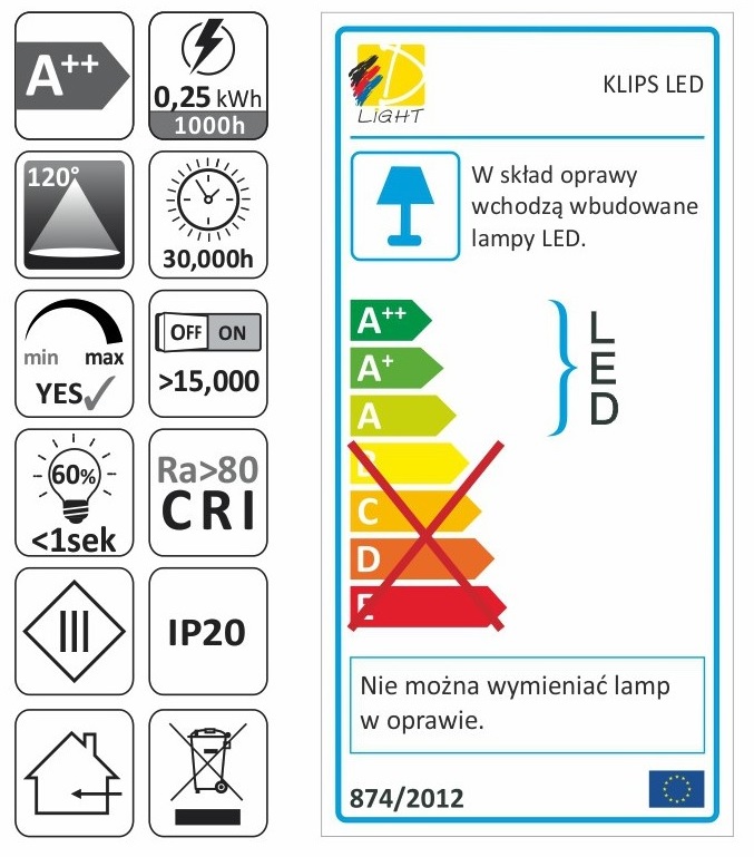 Светильник LED KLIPS пластиковый 0,25W 12VDC 6000К LED3528, провод 2 м арт.KLIPS-P-3528-60K-01