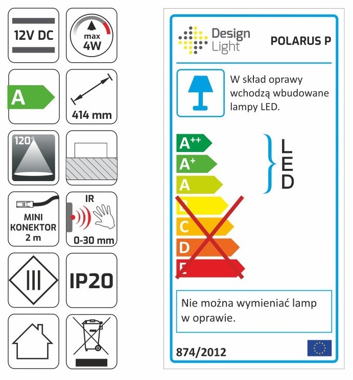 Светильник LED POLARUS P 864 мм, 8W 12VDC 4000К, провод 2 м, молочный рассеиватель арт.POLP-864-NU-01W