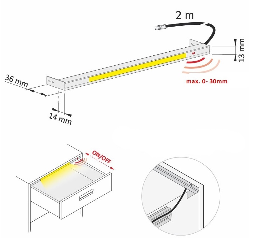 Светильник LED POLARUS P 964 мм, 9W 12VDC 3000К, провод 2 м, молочный рассеиватель арт.POLP-964-BC-01W