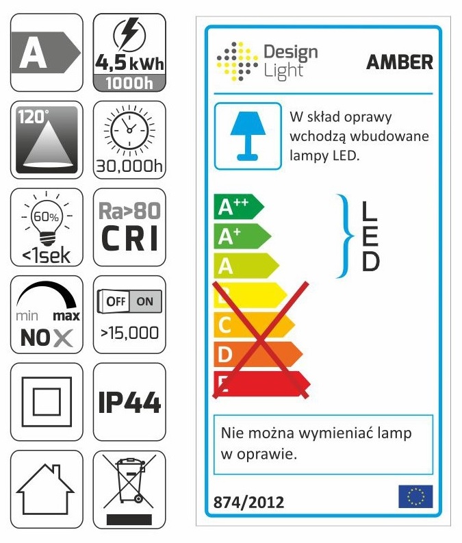 Светильник LED AMBER UNIWERSALNY IP44 4,5W 230VAC 6000К, провод 30 см, хром арт.AMBER-U-60K-01