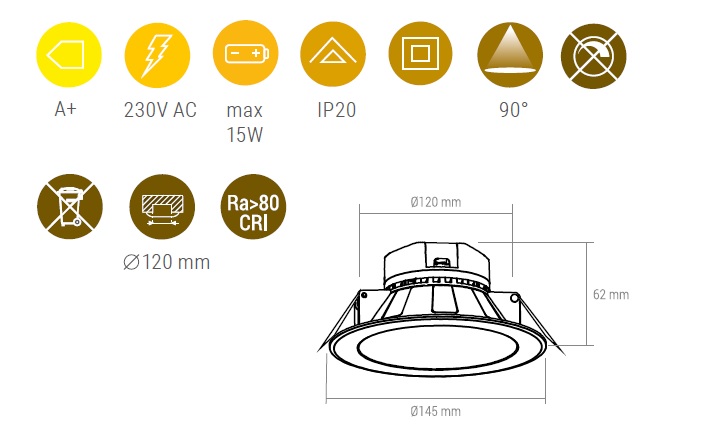 Светильник LED APOLLO 15W 230VAC 3000К арт.APOLLO-15-30K-01