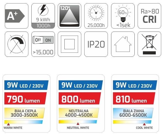 Светильник LED APOLLO 9W 230VAC 3000К арт.APOLLO-9-30K-02