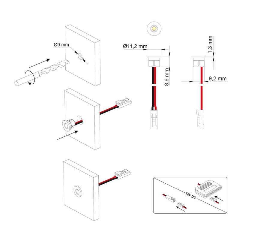 Светильник LED STAR 0,6W 12VDC 3000К, провод 2 м, хром арт.STAR-CH-30K-01