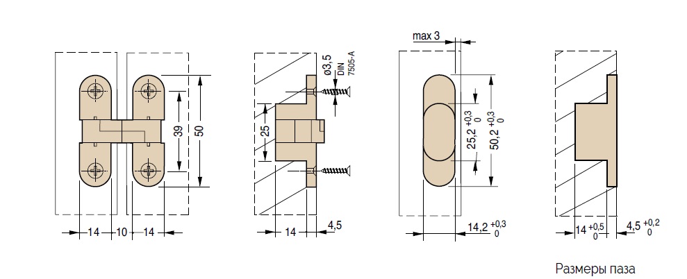Петля скрытая для мебели 50х14 мм, латунь арт.CI000828OTT00