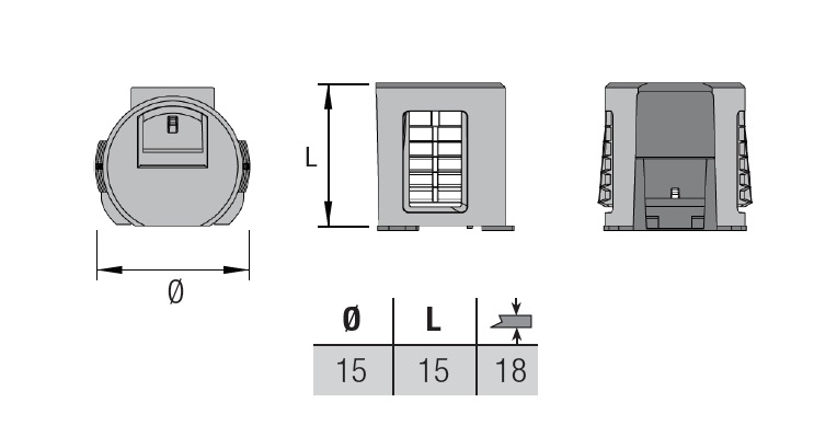 Полкодержатель (вставка) d15, пластик серый арт.SO051PGR