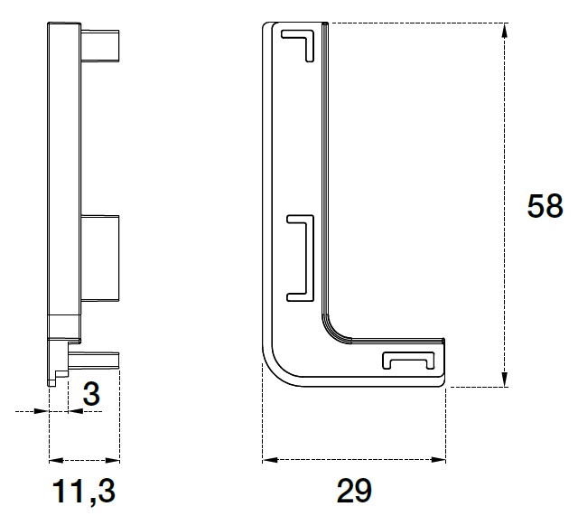 70.104.300.120.100 Комплект заглушек (лев.+пр.) открытых (пласт.) для профиля горизонтального Г-образного Gola R=0
