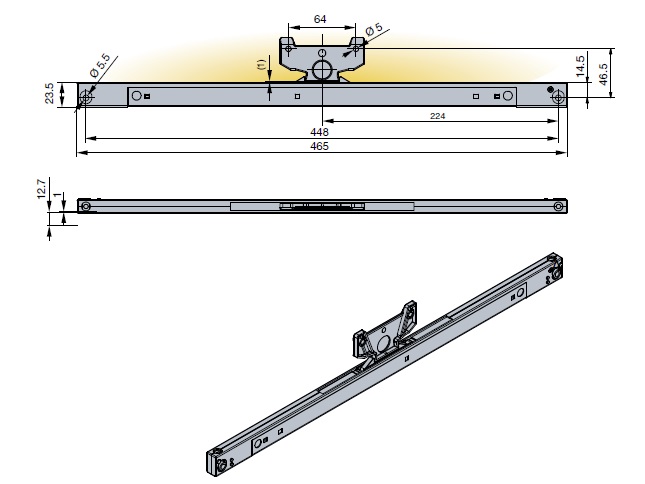 Доводчик Titus Slidix Centro предназначен для демпфирования средней раздвижной двери и центрирования:
