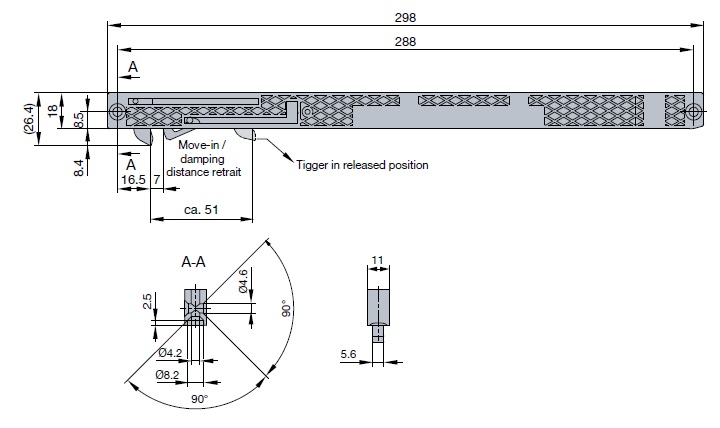 Доводчик Titus Slidix TE предназначен для демпфирования раздвижных и душевых дверей: