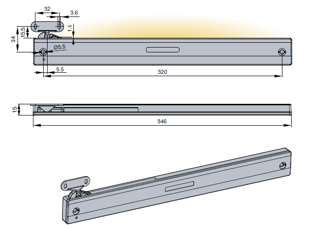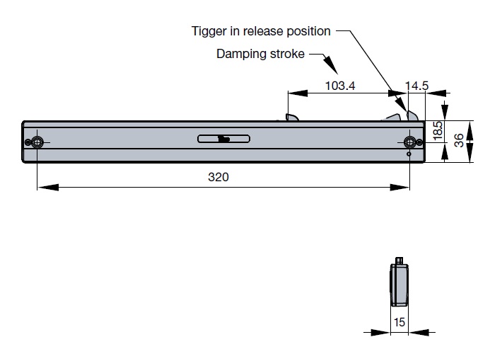 Доводчик Titus Slidix TB предназначен для демпфирования шкафов с раздвижными дверьми: