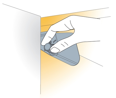 - крепится в угол одним саморезом с той же стороны, где установлены петли (саморез в комплекте);