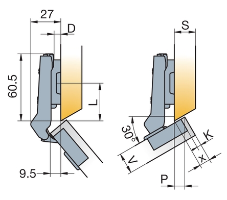 Глубина сверления под чашку петли, мм