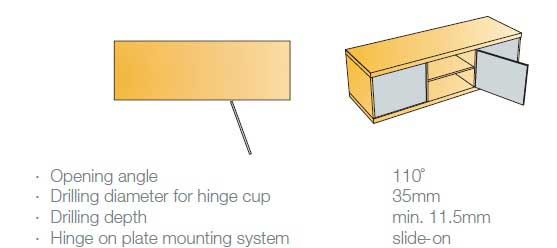Глубина сверления под чашку петли, мм