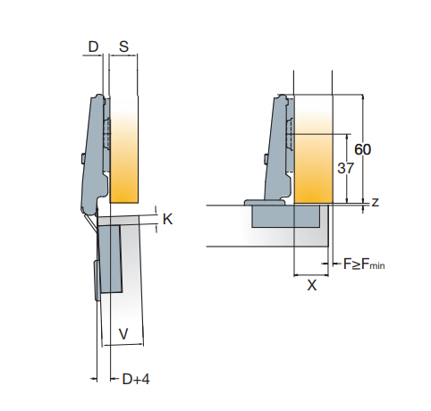 249-7301-050-TL Петля B-Type для толстых фасадов 93/52/0 мм
