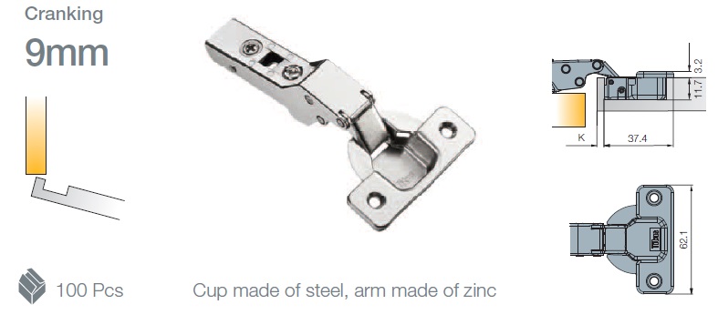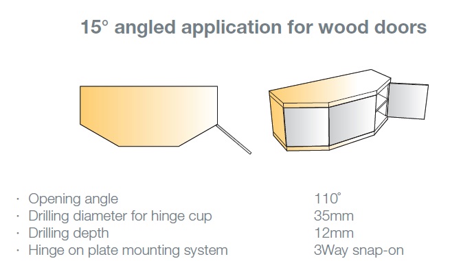 Петля мебельная Titus T-Type угловая 15 градусов 110/48/9 мм для машинной установки. Арт: 702-0D71-650-00