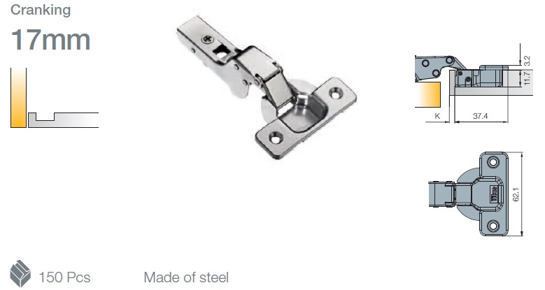 Петля мебельная Titus T-Type 90 градусов 110/45/17 мм с cистемой ускоренной сборки Easy-fix арт.702-0DK4-054-00