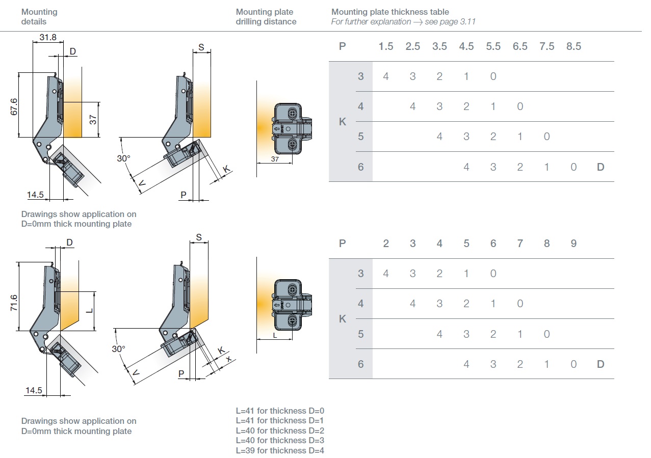- Универсальность: Петля эффективно работает на фасадах различных размеров и веса - от низких до высоких, от тонких до толстых .