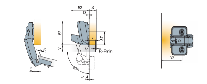 Глубина сверления под чашку петли, мм