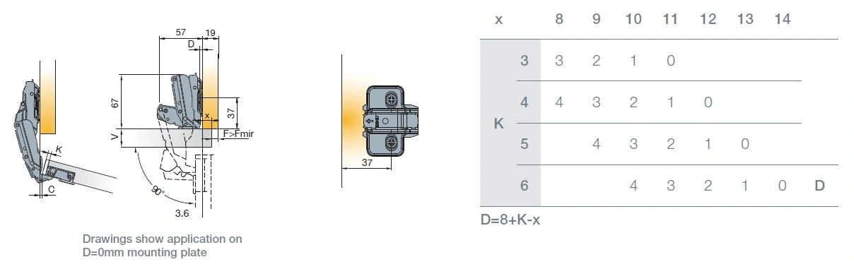 Глубина сверления под чашку петли, мм