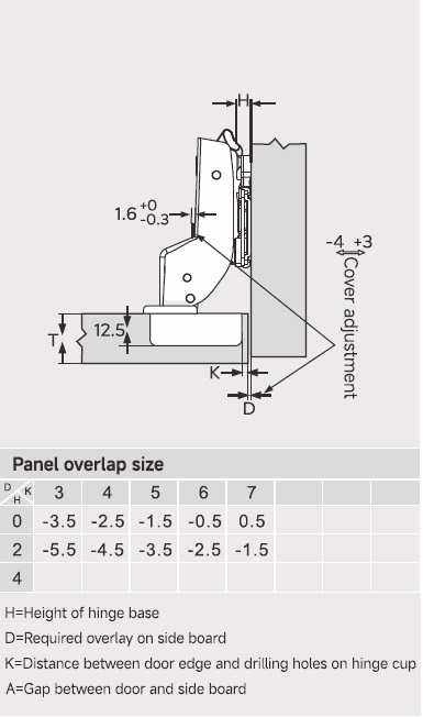 Глубина сверления под чашку петли, мм