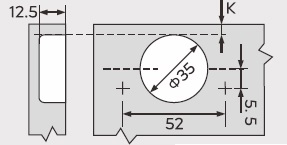 Глубина сверления под чашку петли, мм