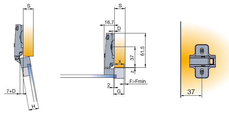 Глубина сверления под чашку петли, мм