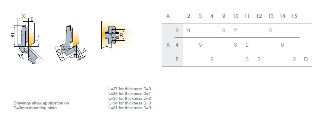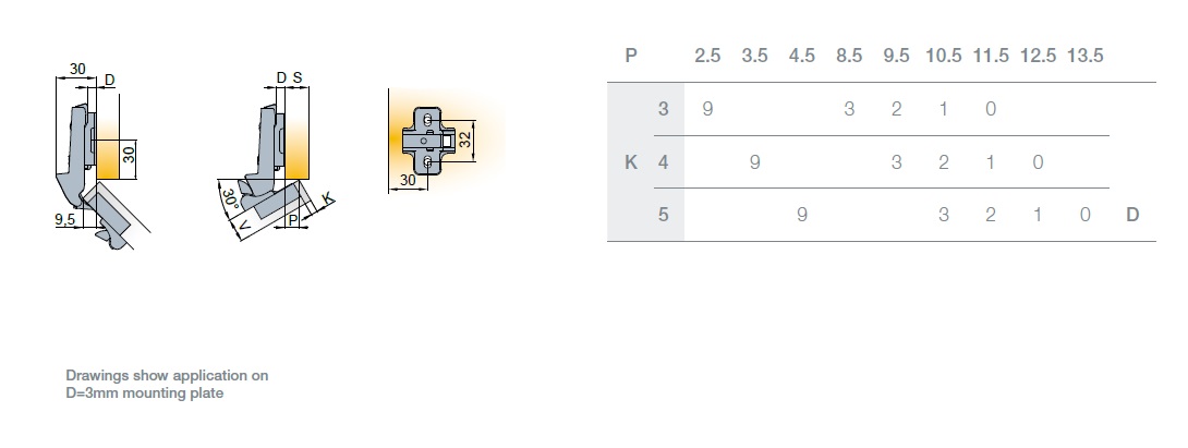 Глубина сверления под чашку петли, мм