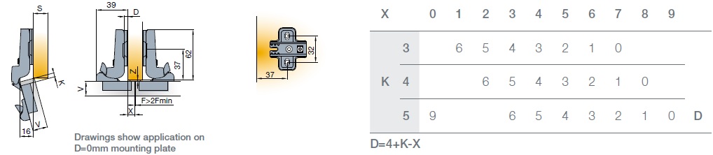 - петля рассчитана на установку деревянных фасадов толщиной до 22 мм и предназначена для скрытого монтажа;