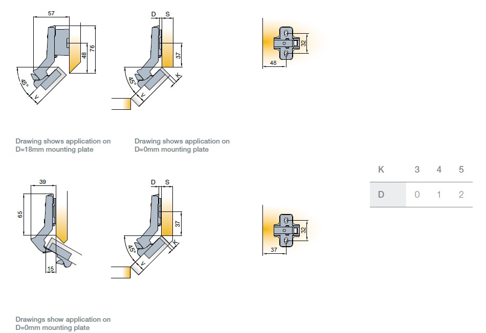 Петля мебельная Titus S-Type i3 угловая (45гр) 110/52/18 мм арт.242-0H47-650-00