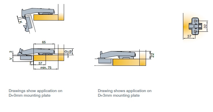 Глубина сверления под чашку петли, мм