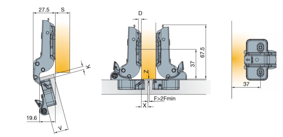 Петля с доводчиком T-type Glissando 110/45/9 мм арт.701-0CT0-054-00
