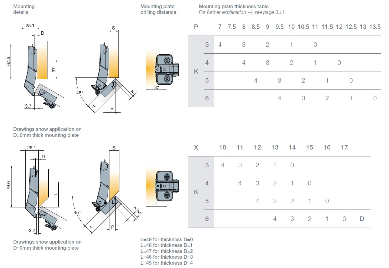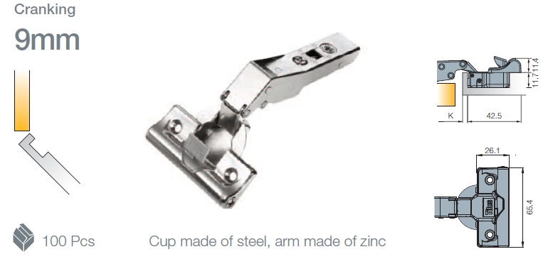 701-0D98-650-00 Петля T-type Glissando с доводчиком 110/45/9 мм, 45 градусов и cистемой ускоренной сборки Easy-fix