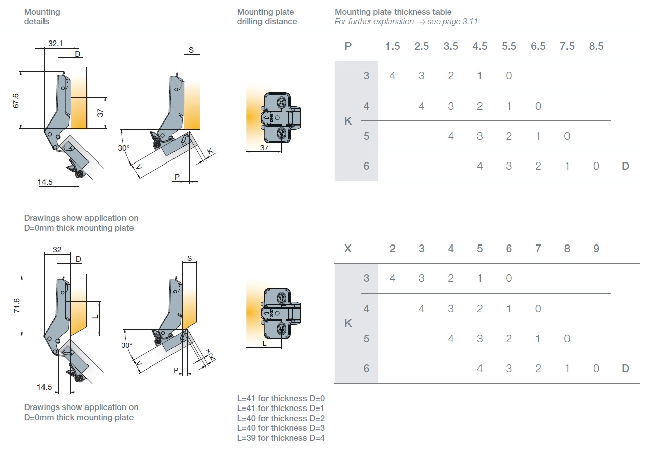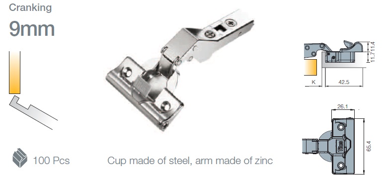Петля с доводчиком T-type Glissando угловая (30 гр) 110/48/9 мм арт.701-0E54-650-00
