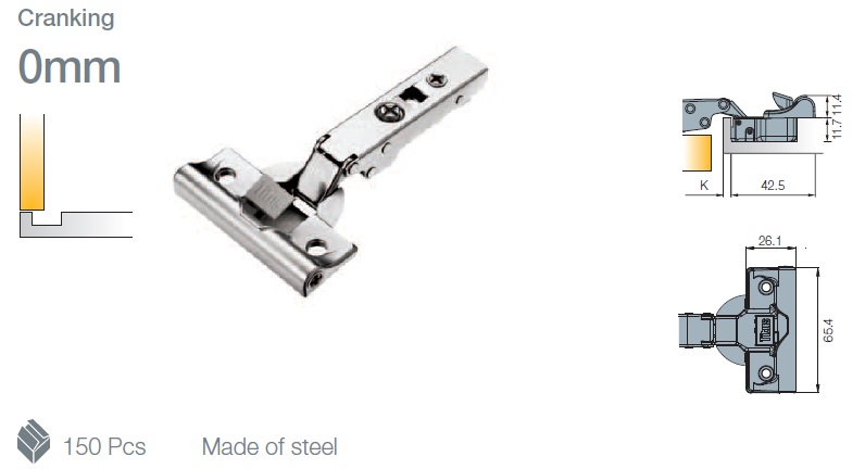 Петля мебельная Titus T-Type Glissando с доводчиком 90 градусов для фасада толщиной до 34 мм 95/45/0 мм. арт.708-0XT0-054-00