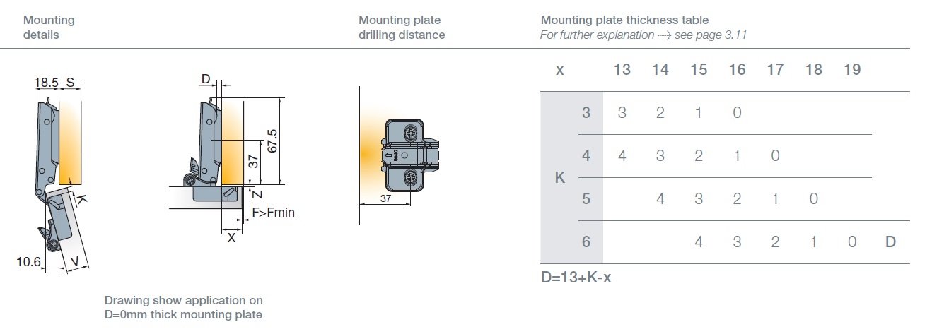 Глубина сверления под чашку петли, мм