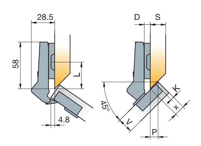 Петля мебельная Titus B-Type-i угловая 45 градусов 110/48/9 мм. Арт: 954-0148-650-00