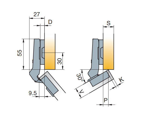 Петля мебельная Titus B-Type-i угловая 30 градусов 110/45/9 мм. Арт: 954-0153-650-00