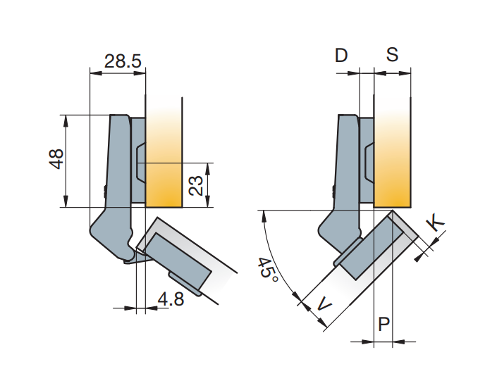 Петля мебельная Titus B-Type-i угловая 45 градусов 110/45/9 мм. Арт: 954-0154-650-00