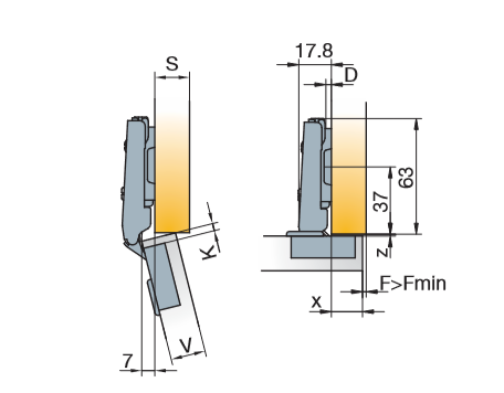 Глубина сверления под чашку петли, мм
