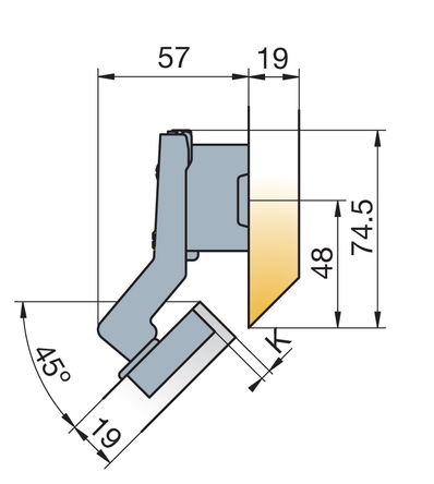 Петля мебельная Titus S-Type-i угловая 45 градусов 110/45/45/18 мм. Арт: 954-0E11-650-ST