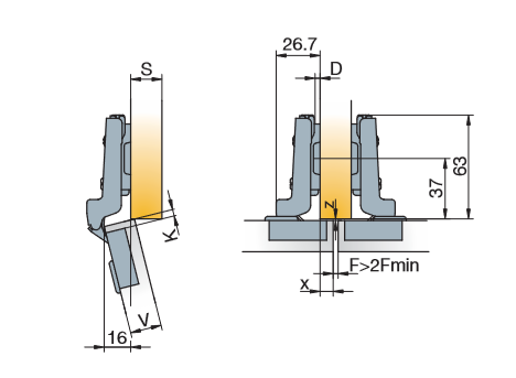 Глубина сверления под чашку петли, мм