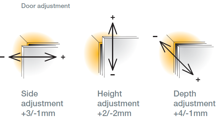 Регулировка фасада по горизонтали от, мм