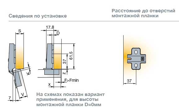 Глубина сверления под чашку петли, мм
