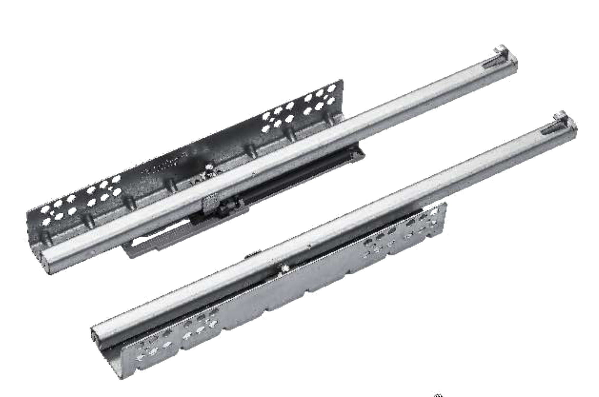 Направляющие скрытого монтажа создают минимальный внешний вид ящика - ничего лишнего. Установка задвижного типа обеспечивается фиксаторами которые нужно заказать отдельно. Так же, с помощью фиксаторов можно отрегулировать фасад ящика по вертикали на 2 мм. В комплекте левая и правая направляющая. Частичное выдвижение идеально подходит серийным производителям мебели в среднем ценовом сегменте.