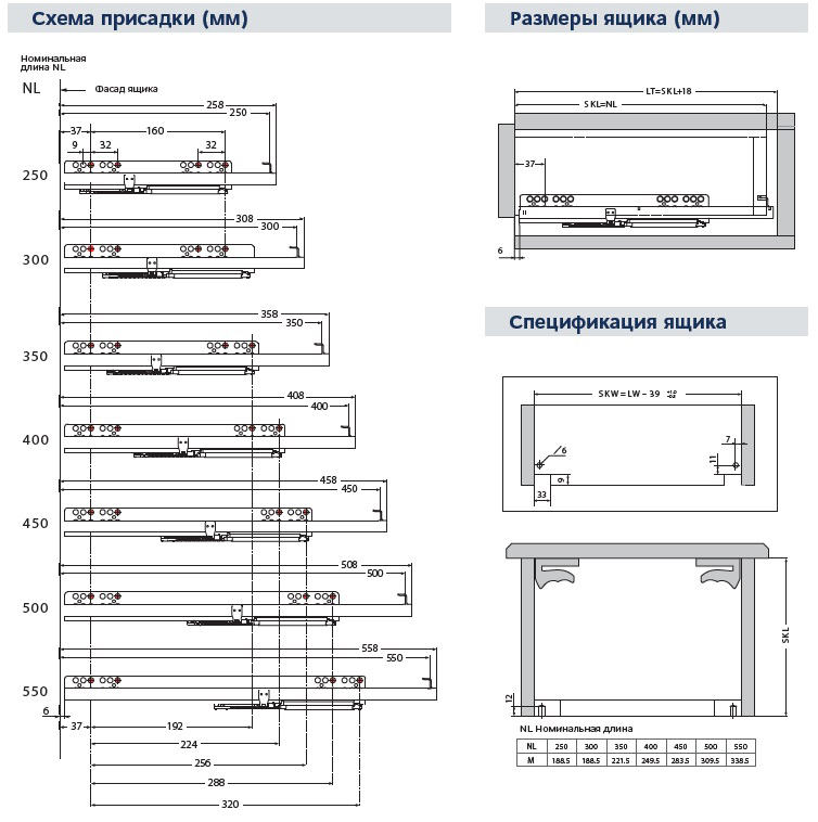 Комплект упакован в индивидуальную упаковку. Направляющие скрытого монтажа создают минимальный внешний вид ящика - ничего лишнего. Установка задвижного типа обеспечивается фиксаторами которые нужно заказать отдельно. Также с помощью фиксаторов можно отрегулировать фасад ящика по вертикали на 2 мм. В комплекте левая и правая направляющая. Полное выдвижение