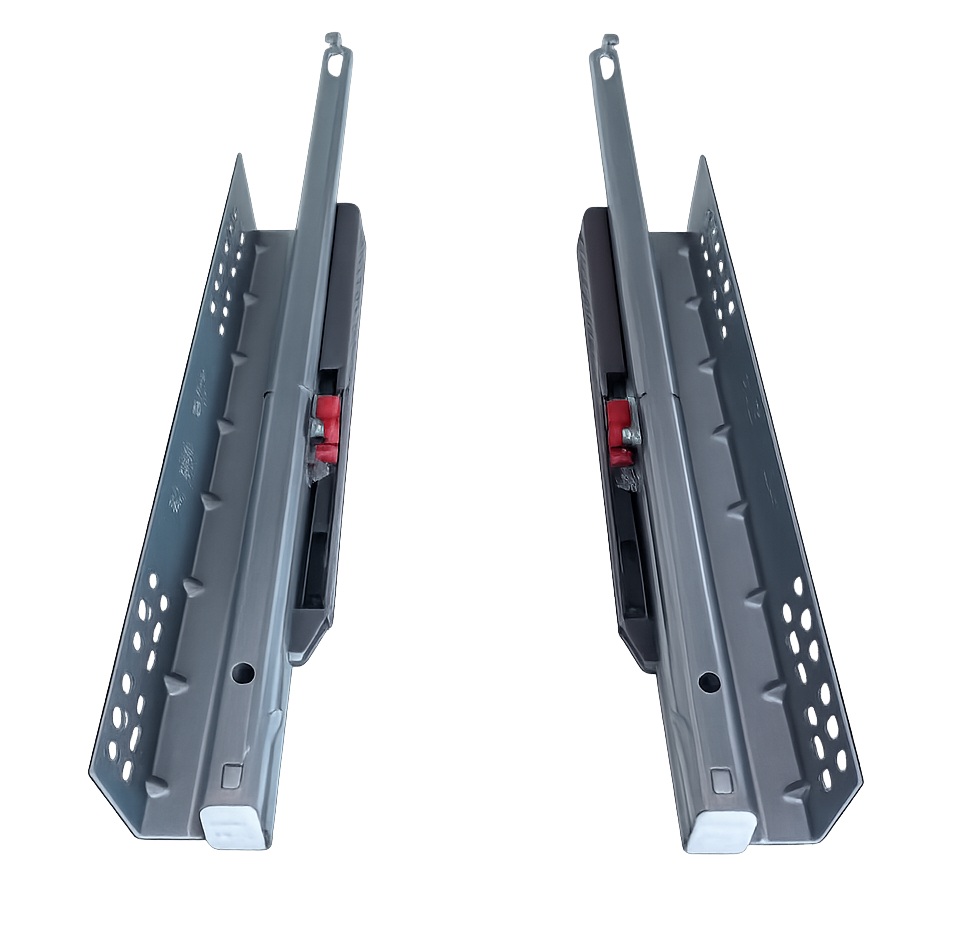 Направляющие скрытого монтажа создают минимальный внешний вид ящика - ничего лишнего. Установка задвижного типа обеспечивается фиксаторами которые нужно заказать отдельно. Так же, с помощью фиксаторов можно отрегулировать фасад ящика по вертикали на 2 мм. В комплекте левая и правая направляющая.