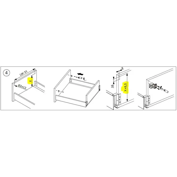 Держатель позволяет соединить рейлинг с задней стенкой ящика.