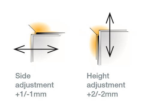 Регулировка фасада по горизонтали от, мм